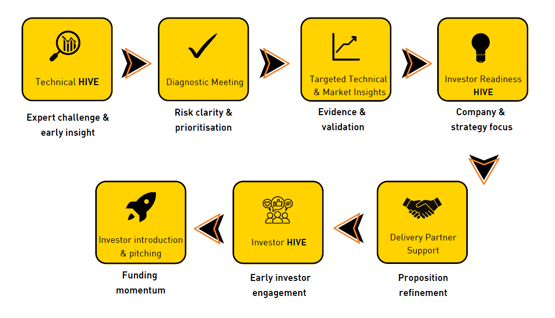 - Stages 4-7: Investment Readiness HIVE, Investor HIVE, and related activities